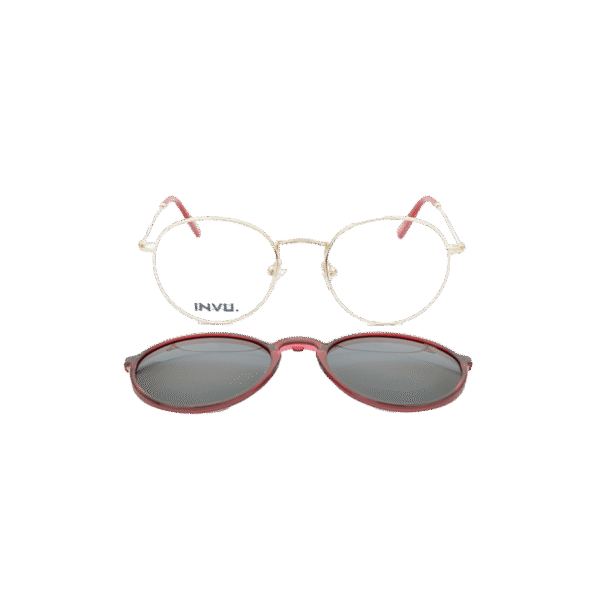 Montura óptica infantil INVU. De color oro con detalles rojo translúcido (“Gold/Milky Red”). Un modelo ligero, cómodo y resistente, diseñado para acompañar el uso diario. Su estructura ergonómica garantiza comodidad y ajuste estable, mientras su estilo alegre y moderno lo convierte en una opción atractiva tanto para niños como para niñas.