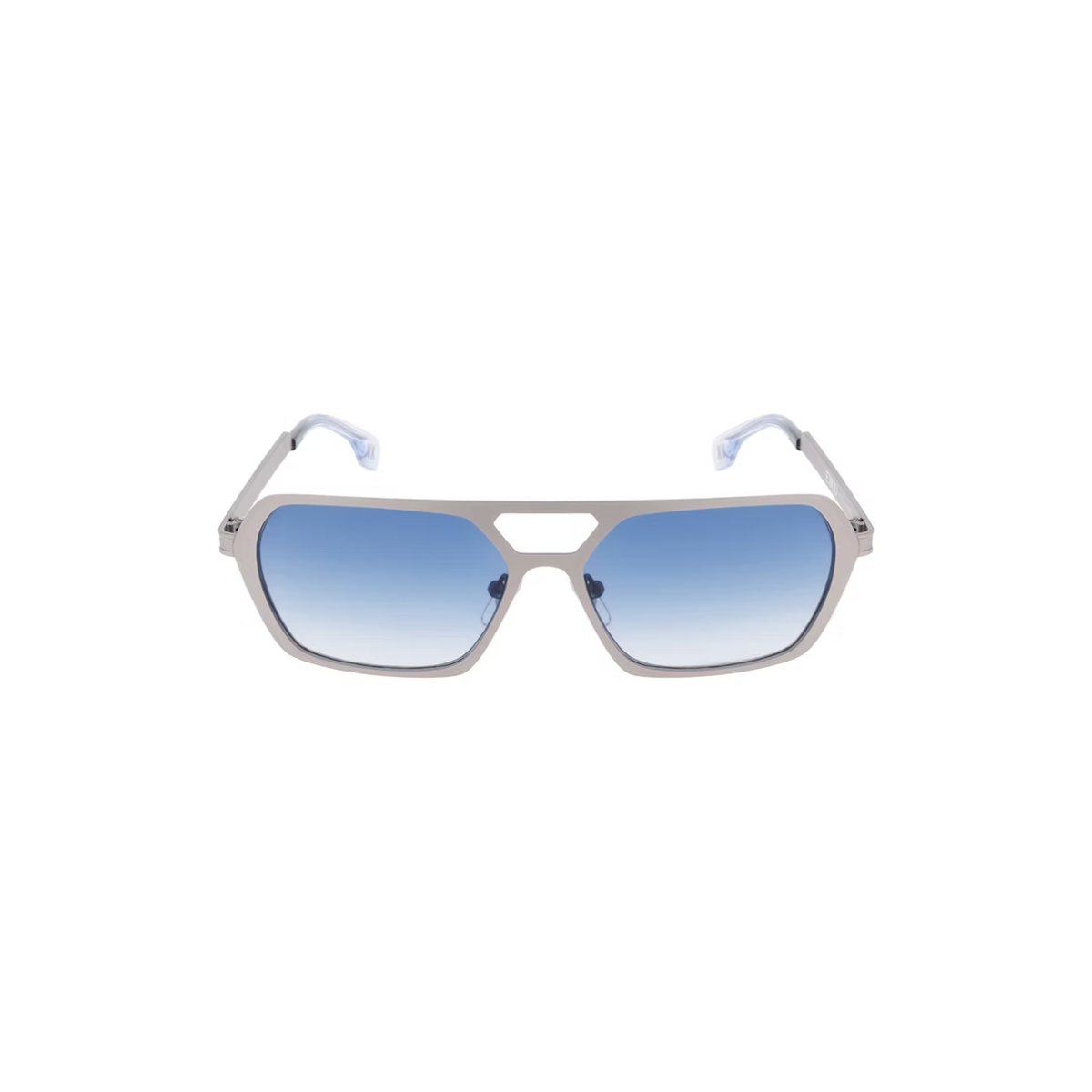Montura gris mate con lentes azules degradadas (“Gradient Blue”), una combinación fresca y equilibrada que aporta estilo y contraste visual.